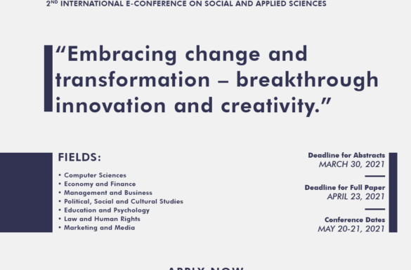 The University of New York Tirana warmly invites you to present your research paper at the Second International e-Conference on Social and Applied Sciences which will take place on May 20-21, 2021.